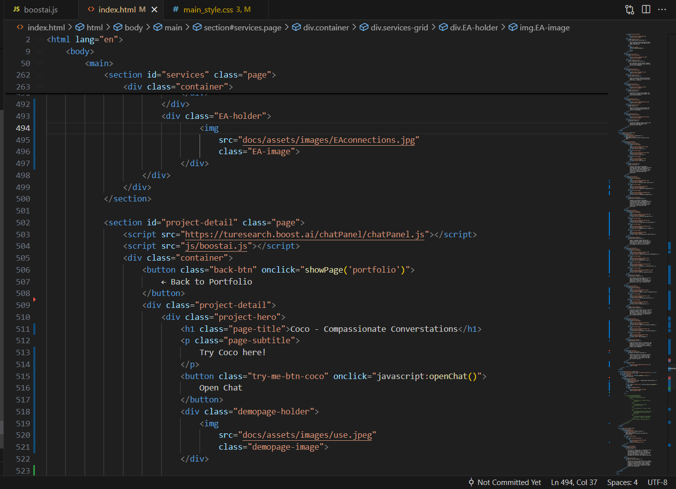 T&R C&A U&SAlongside coding my portfolio website in HTML and embedding Coco with JavaScript, I expanded my T&R expertise by working with AI through Boost.ai. The platform allowed me to quickly work with LLMs and create a fully functional chatbot within one semester. I merged C&A and T&R by using AI as a new creative method. In sessions, I evaluated conversations prototyped in boost.ai from a first-person perspective. I developed multiple conversational setups based on compassionate speech principles, and through reflection, identified which approaches and messages would be helpful to me during times of stress. Throughout my ERB and PFM process, I asked critical questions to design ethically with AI, such as the desired user–AI relationship and the privacy of user data. This led to defining Coco’s role as a short term tool and using a platform with a DPA. It combined T&R with U&S, as I learned to apply AI responsibly, an essential aspect to me when designing for mental wellbeing.