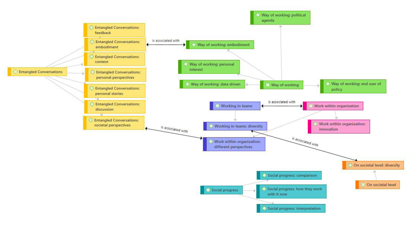 - During the evaluation phase, we conducted two co-reflection sessions at the municipality of Brabant. I used ATLAS.ti for coding the records and notes. From this I got a better understanding of the data and could easily retrieve quotes during the concluding of insights. This expanded my methods in MD&C and U&S, enabling me to present qualitative data in a structured and visual way to support design decisions.
