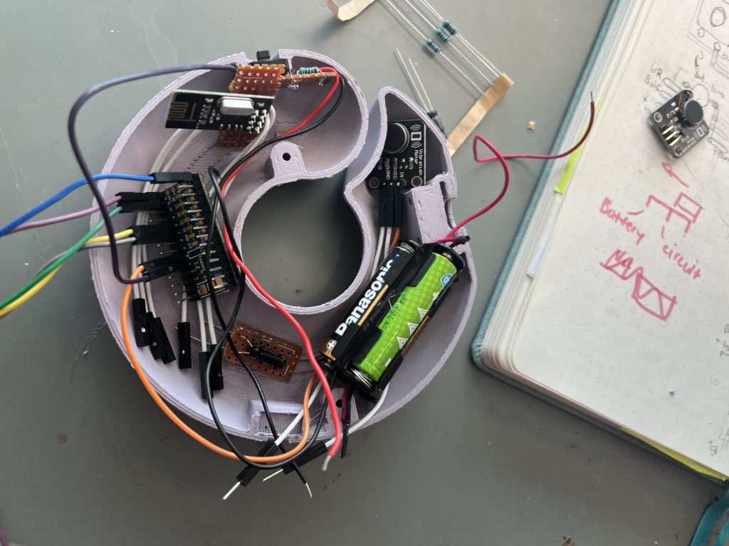 - I built interactive prototypes by coding in Arduino and setting up electronics for four wearables. Each included a vibration motor and button and was wirelessly connected through a multi-directional transceiver/receiver module, which allowed remote activation of the vibrations. The setups were first designed on a breadboard and then soldered for the final prototype. This process strengthened my T&R and MD&C skills by combining physical prototyping with coding to enhance the interaction quality of the final design.