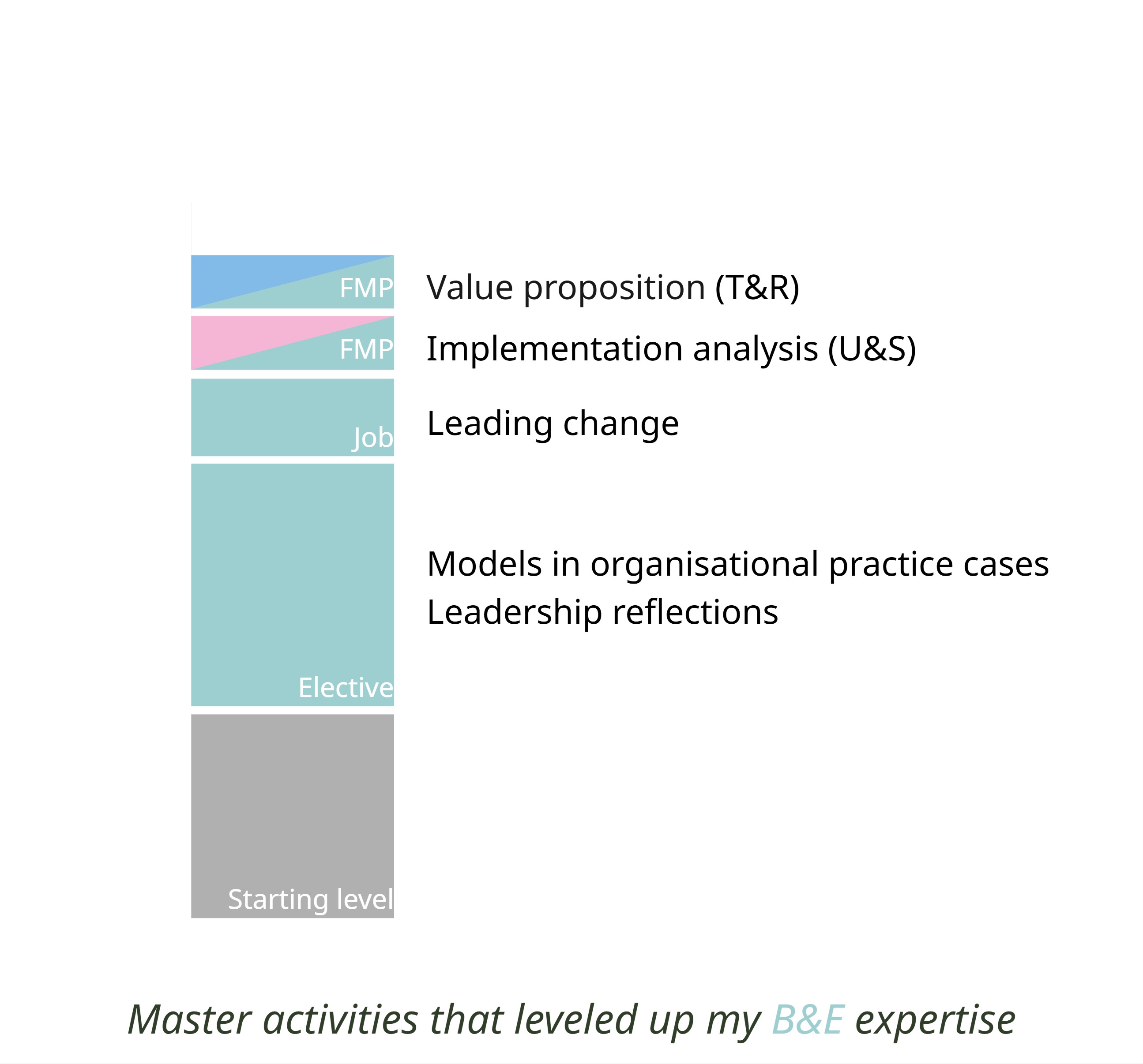 B&EWithin my elective space, I followed Values based leadership and Design for social innovation. I chose to broaden my B&E knowledge as that felt lacking but is necessary for future employment and professional development.