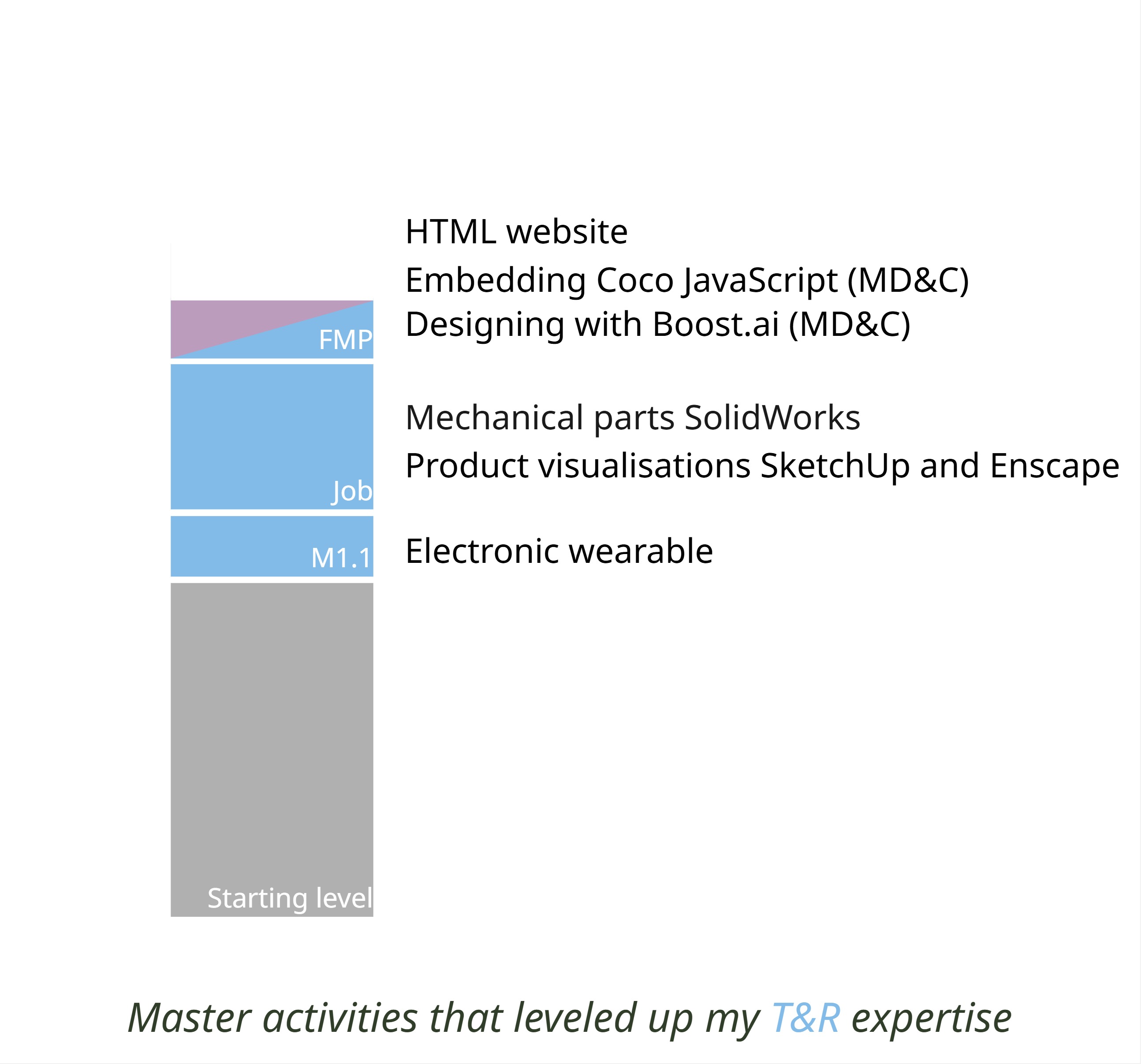 For me, this area is about building hands-on skills that enable me to independently create and test ideas. I am proficient in 3D modelling and rendering (SketchUp, Enscape, SolidWorks) and make use of 3D printing in my design process for mechanical construction, a skill I further developed through my part-time job. In M1.1, I wrote Arduino code for connectivity and multiple actuators within prototypes. During my FMP, I programmed an HTML website and integrated a conversational agent with JavaScript, which further strengthened my software and coding skills. While my programming knowledge is not yet deep, it enables me to quickly prototype interactive concepts.