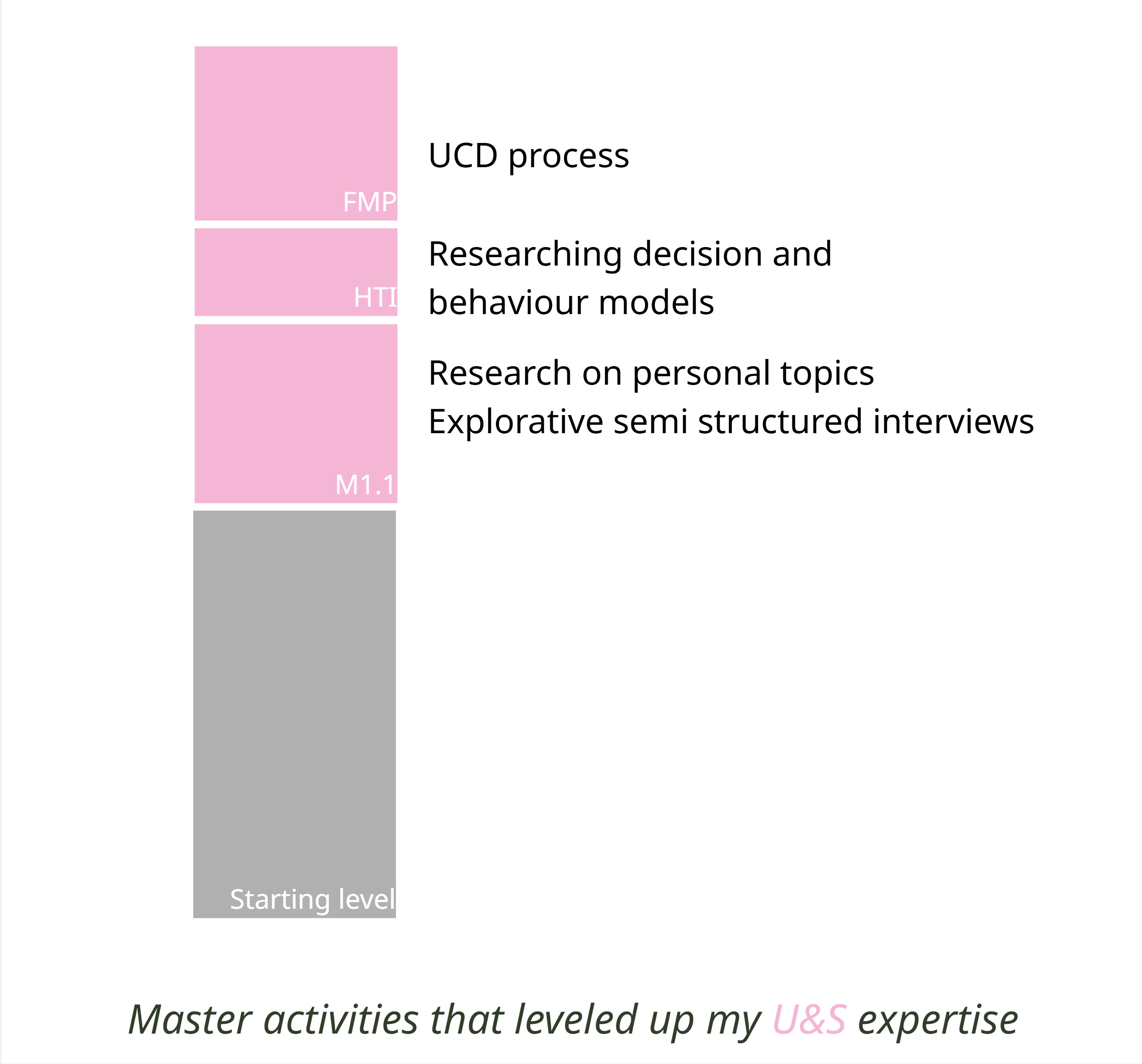 U&SWithin my M2.1, I followed master's courses at the Human-Technology department. I wanted to gain more U&S knowledge that was based on scientific principles, to support me in effectively and efficiently supporting my users' well-being. I took courses on human decision-making and the role of the environment on human behaviour and experience.